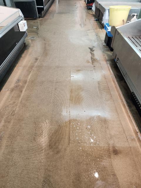 こちらはスーパー様の鮮魚コーナーの洗浄作業です!
